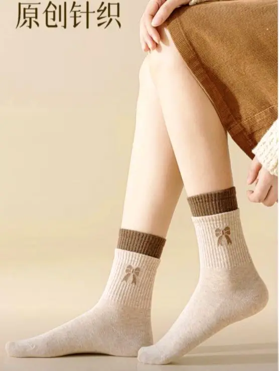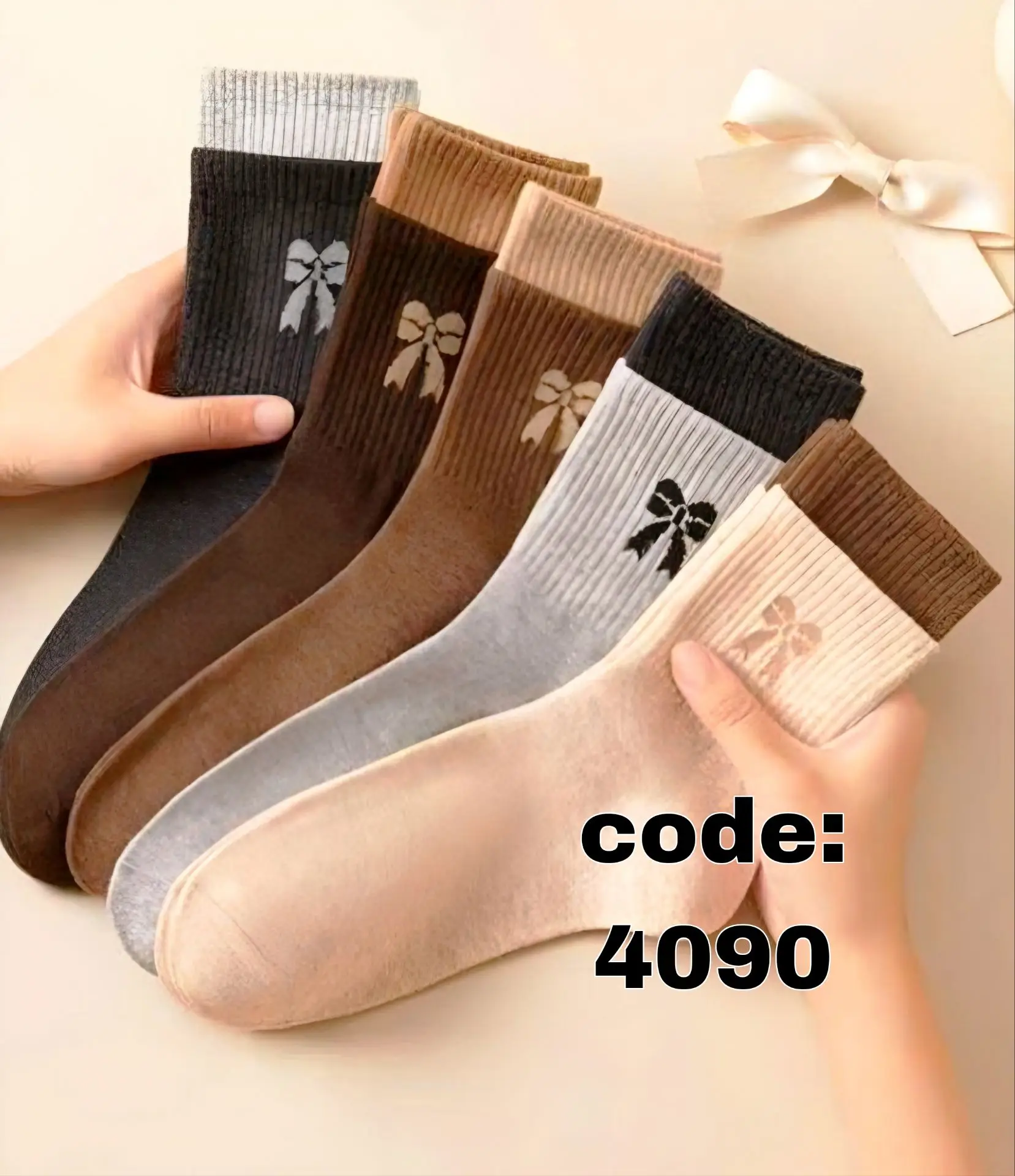 جوراب ساقدار زنانه دو کش پاپیون کد 4090 لادن (10جفتی)
