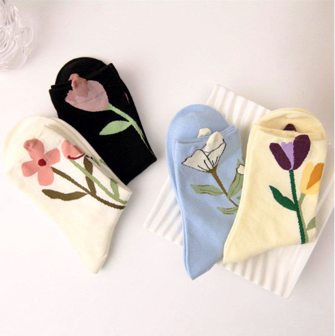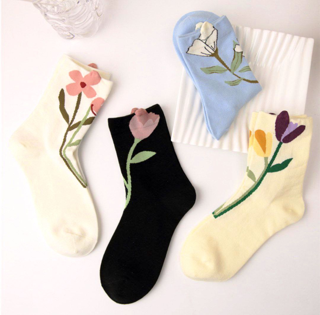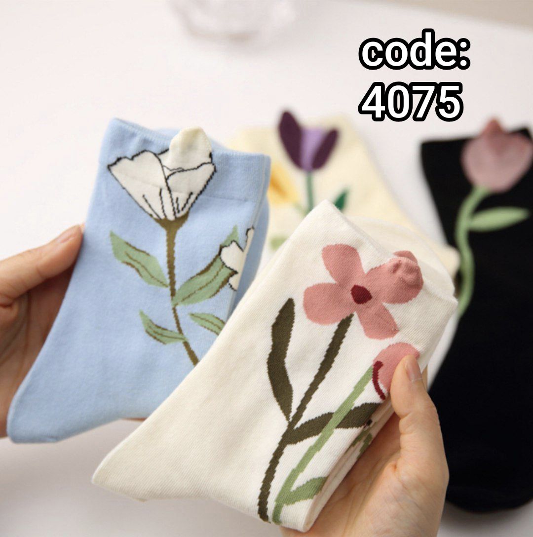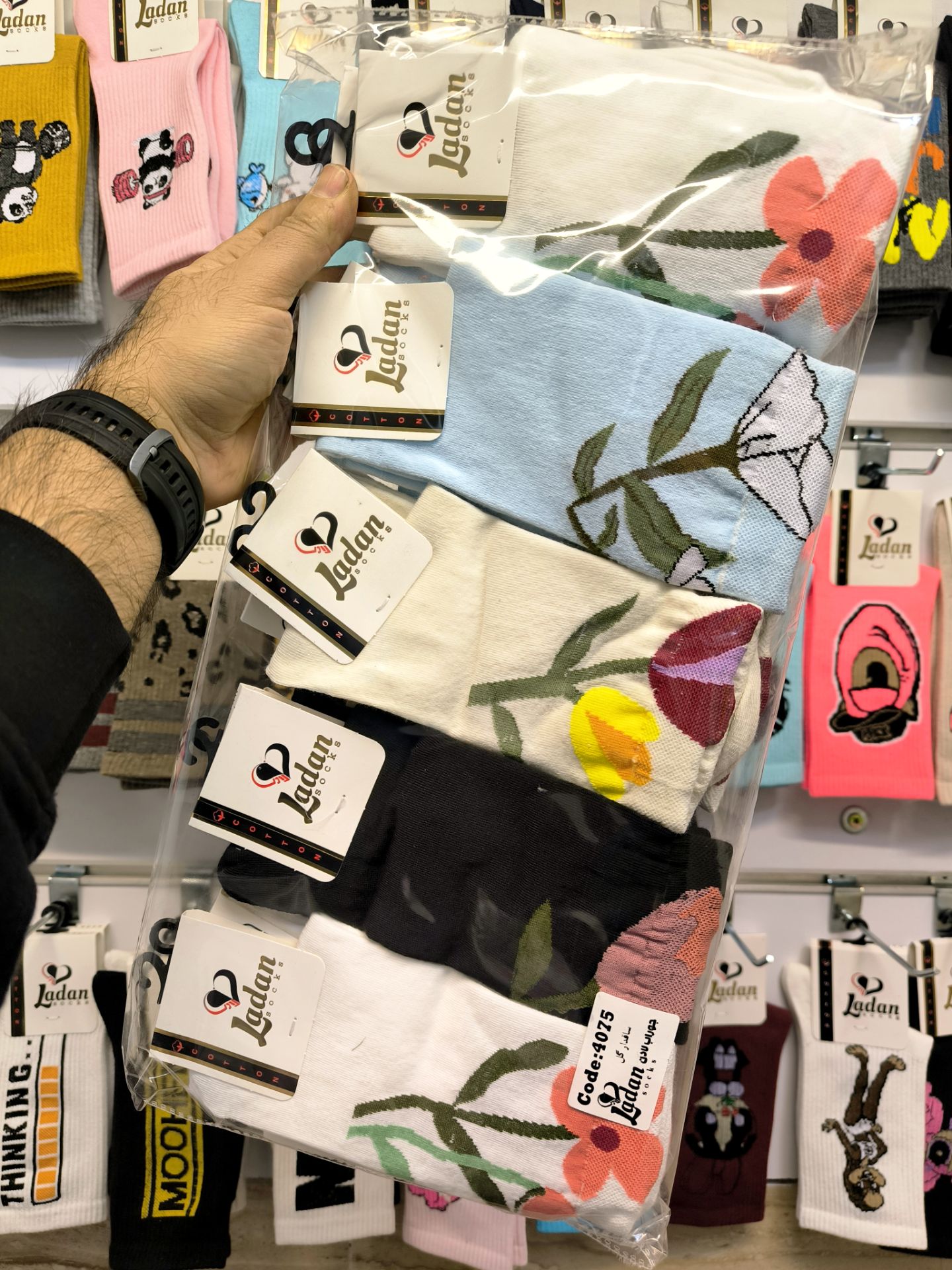 جوراب ساقدار زنانه گل گوشدار جور آبی دار کد 4075 لادن (10جفتی)
