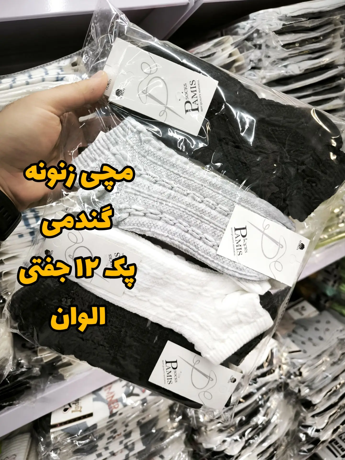 جوراب مچی زنانه گندمی برجسته پک کلا الوان 4 رنگ پامیس (۱۲جفتی)